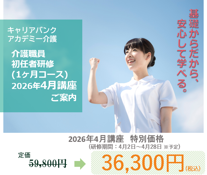 キャリアバンクアカデミー介護職員初任者研修4月講座のお申込受付が開始しております。